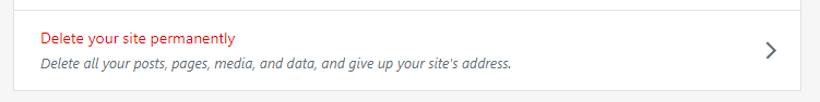 - On the screen at the right, scroll down and click on “Delete your site permanently”